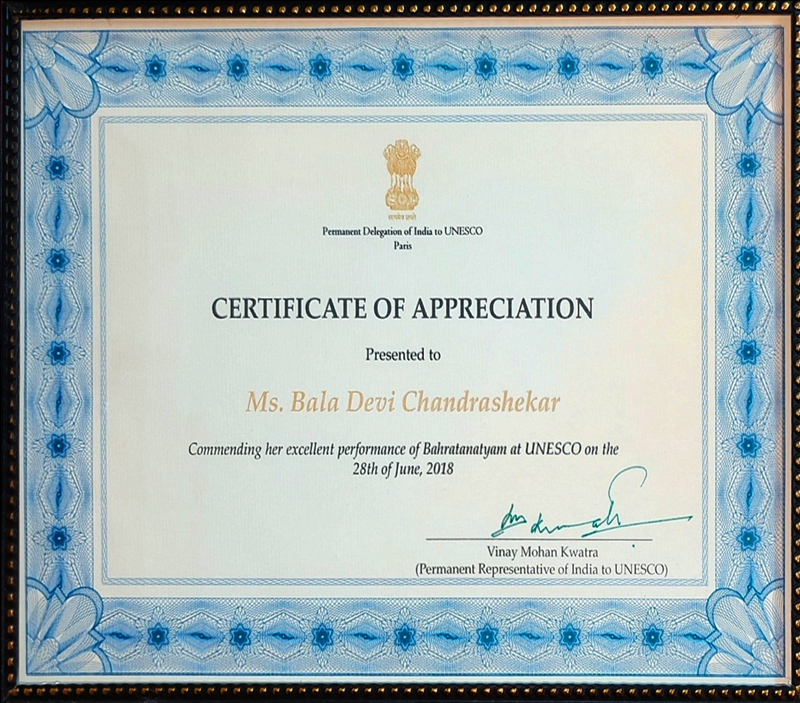 As a Professor of Practice, Bala is constantly developing Performing studies in collaboration with Theater and Dance, History, Philosophy, Linguistic anthropology and South Asian Departments of various Universities in the United States and served as Fellow and Artist in Residence at The Carl A fields Center@Princeton University. Bala has lectured and conducted workshops at Princeton, Rutgers, Columbia, Vassar, Mount Holyoke, Yeshiv, Temple, Univ of Penn, Drew, Rider, Mc Carter theater etc, Bala conducts workshops across the world. Bala is currently affiliated scholar of the South Asia Center and a honorary visiting professor at Annamalai University.