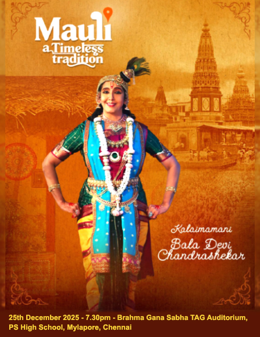 - 25th December 2025 - 7.30pm - Mauli a Timeless Tradition - Brahma Gana Sabha TAG Auditorium, PS High School, Mylapore, Chennai